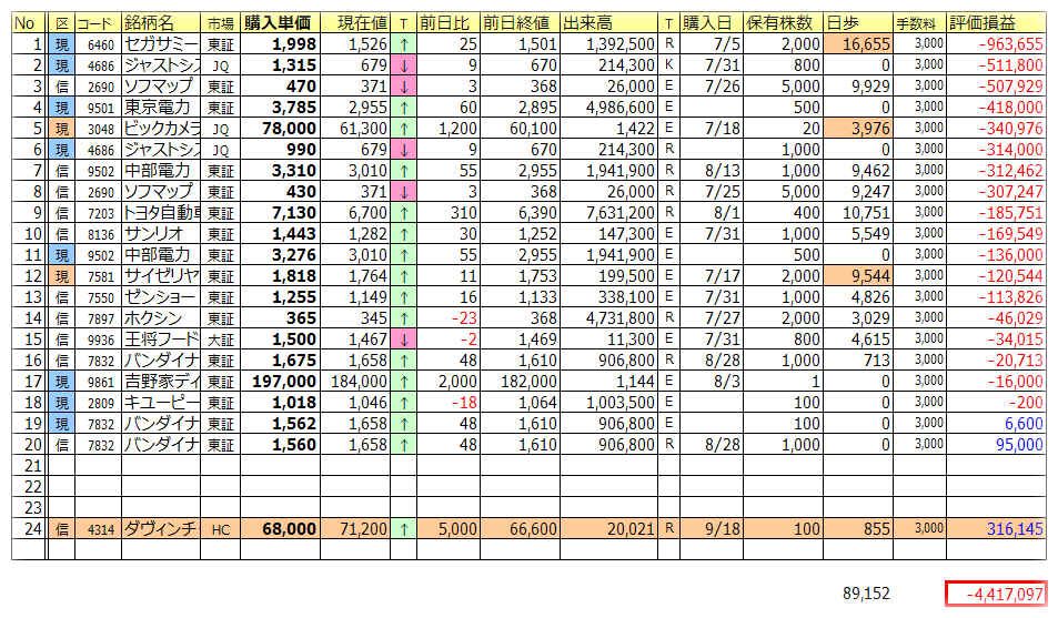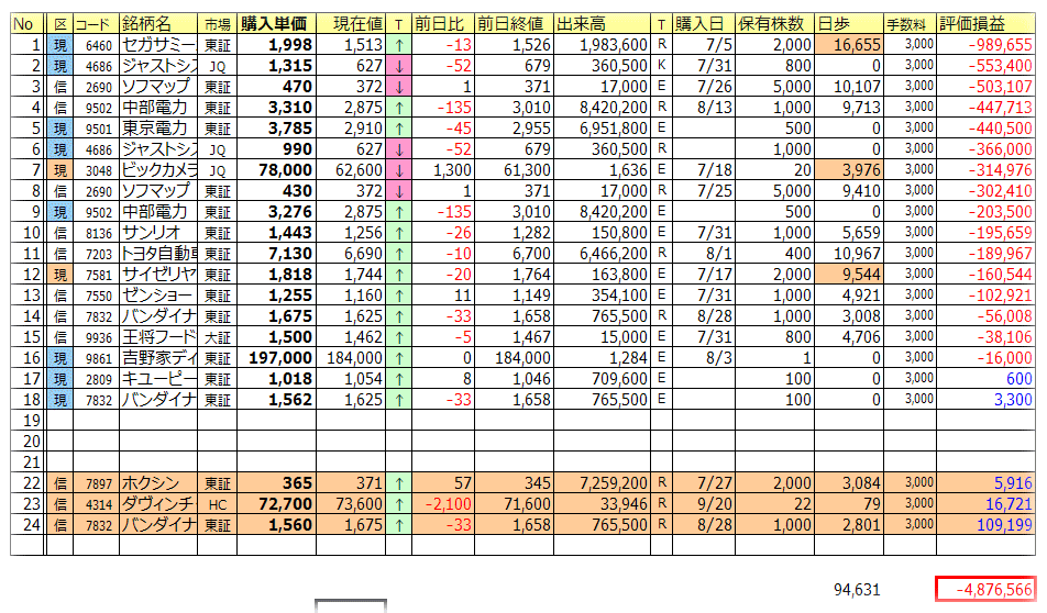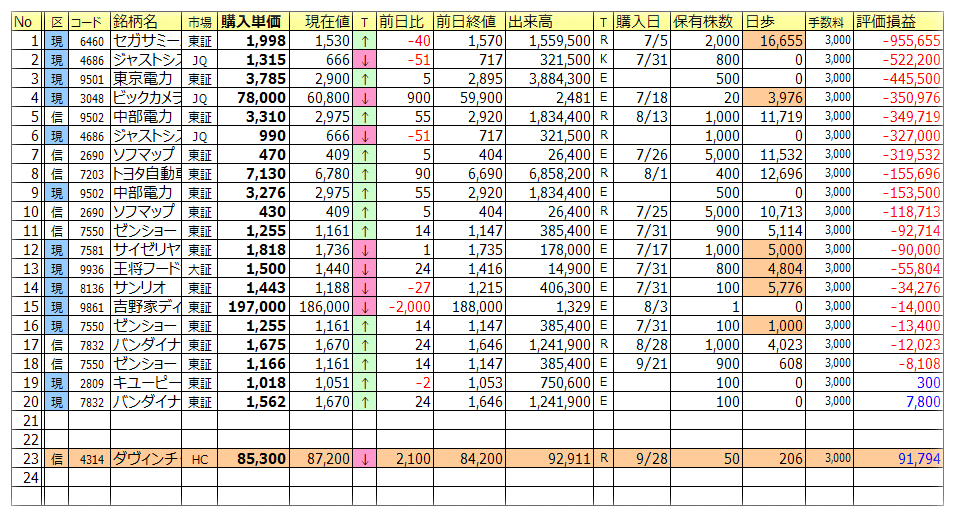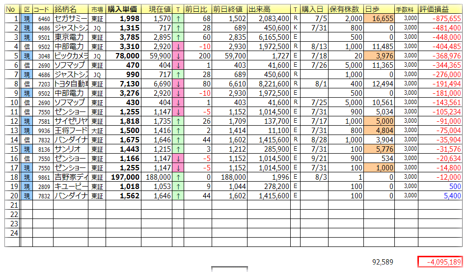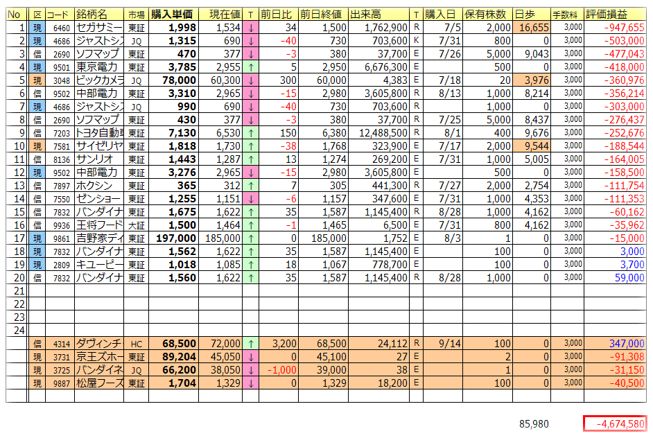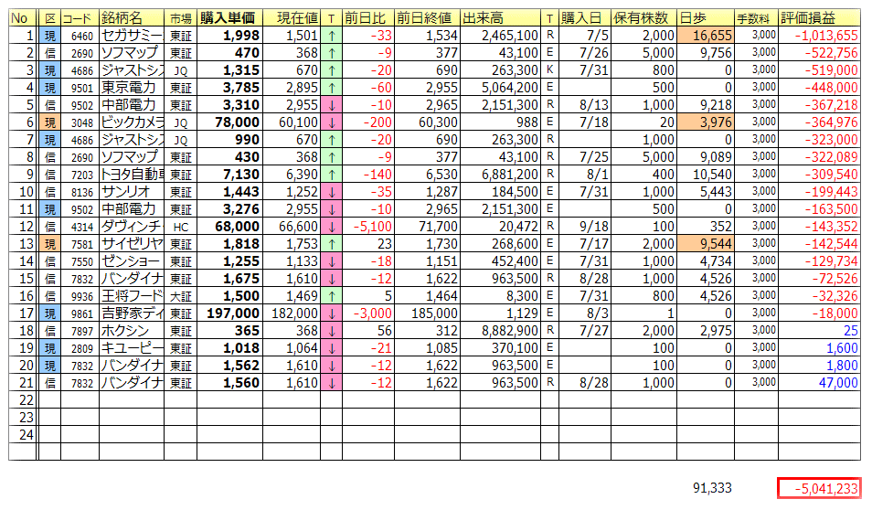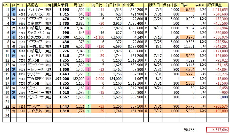 今年の前半に、カプコン&ジャストで-700万近くの含み損を経験して