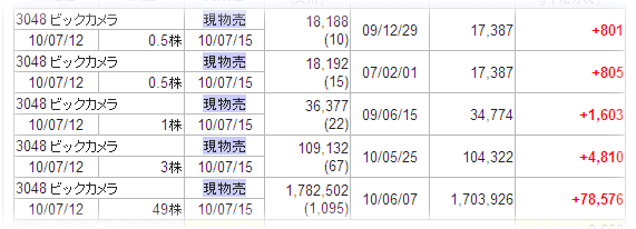 ビックカメラ、現物54株を利確した。(残1)