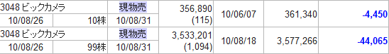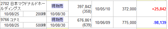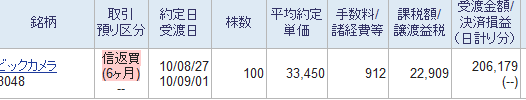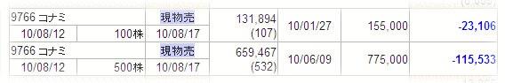 昨日、引成で購入した任天堂株を、寄成で売却。