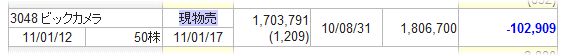 ビック終了 コメントを残す ビックカメラ50株を売却 -10万円ぐらいかな 残りの1株は放置 テンアライド1000株注文を入れたが 200株だけ買えた 290円 残り800株どうしようかな、、、 ANAを1000株購入 長期、優待狙い(田舎帰省用)