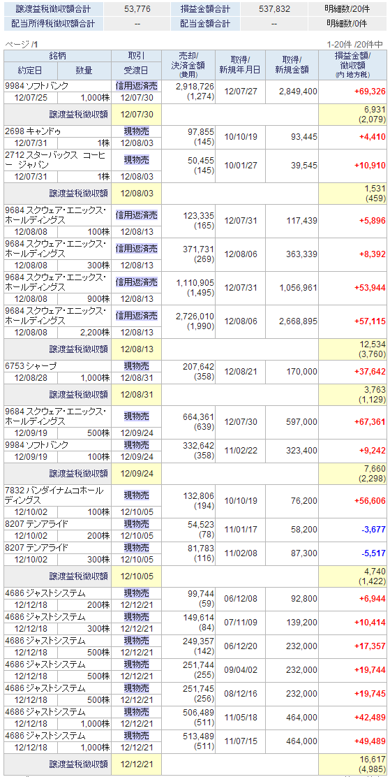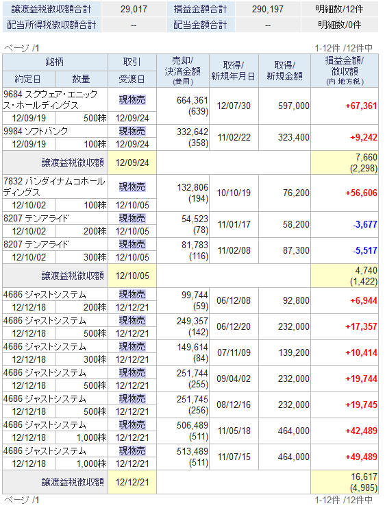 ジャスト完売 コメントを残す 残り1000株も本日売却。 さよならジャスト~~(>_<) 終わってみれば、 230万円を6年預けて、250万円ぐらい。 年利1.5%/年ですか。 もし400円を切るようなことがあったら、 また参戦します。