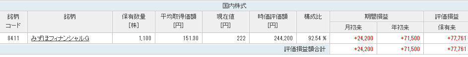 余った金で、みずほ2000株購入。