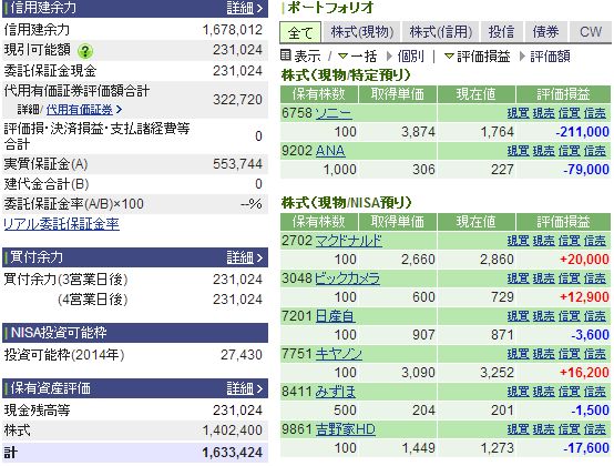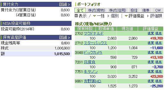 NISA追加 コメントを残す 自分の口座に資金が残っていたため、NISAで1銘柄交流。 ※厳密には100株追加で計600株 約定日時 2014-05-16 09:00注文番号 776現物買銘柄:8411 みずほ東証株数:100価格:201