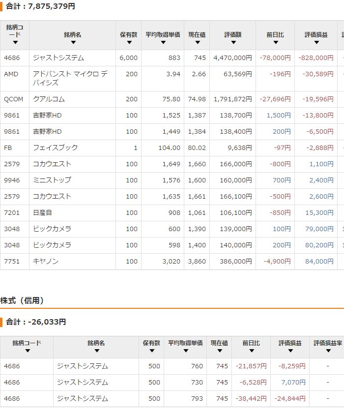 何年も塩漬けだったSONYも痛いなぁ。(これがなければ+40万だし)