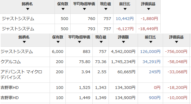 | 吉野家ホールディングス 集計 | ¥-52,694 |