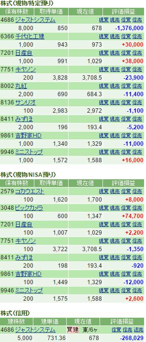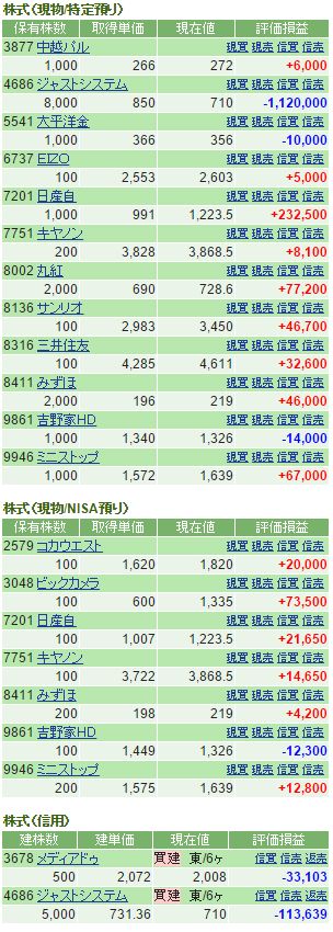 あとは配当が2%前後の銘柄を購入。長期狙い。