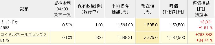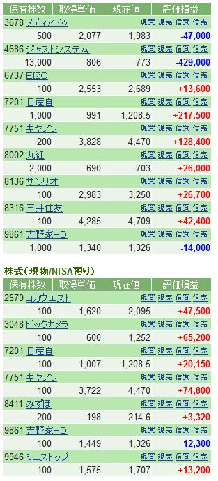 遂に含み益へ コメントを残す 含み損として100万円を超えていたのが、 遂に本日、含み益となりました。しかも14万円かな。 と言ってもジャストの株価で全てが決まるのですが。。。 確か-160万円まで行ってたが、それでもまだ-40万円もある。 これがプラスになったら画期的だ! その他の銘柄としては、ロイヤルHDが30万弱。 実は1000株購入予定で、まずは500株。 下がったら残り500株と思っていたら買えなくなってしまった。 もし買っていたら、60万円? すご。たらればの話でした。
