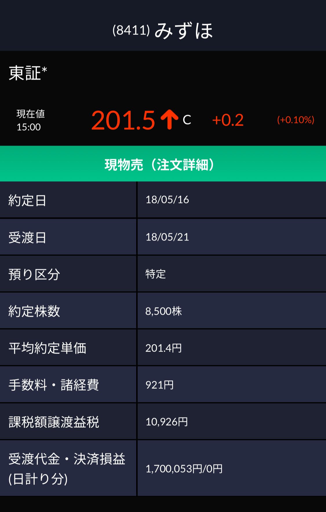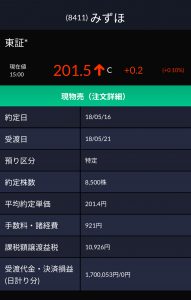 みずほ8500株 利確