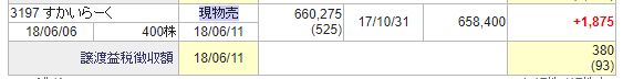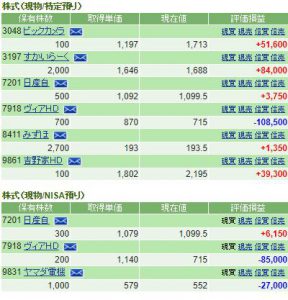 すかいらーく 少し利確 コメントを残す 4900株も所有していて、一時期80万ぐらいの含み損。 それがやっとプラテンとなったので、とりあえず400株を利確。 利益1800円、、、。 そのまま、日産500株を購入。