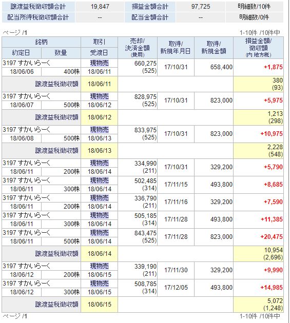 すかいらーく 残1500株 コメントを残す プラテンしたので手持ちの4900株を順次売却。 最初以外は500株単位で売却 2K, 6K, 10K, 14K, 19K, 20K, 23K 現時点で9.7万(税を引くと8万ぐらい)。 残り1500株。10万の利益は取れそうだ。