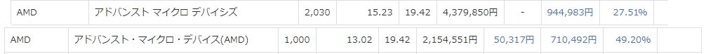 AMDの含み益を計算してみた。130万だ。