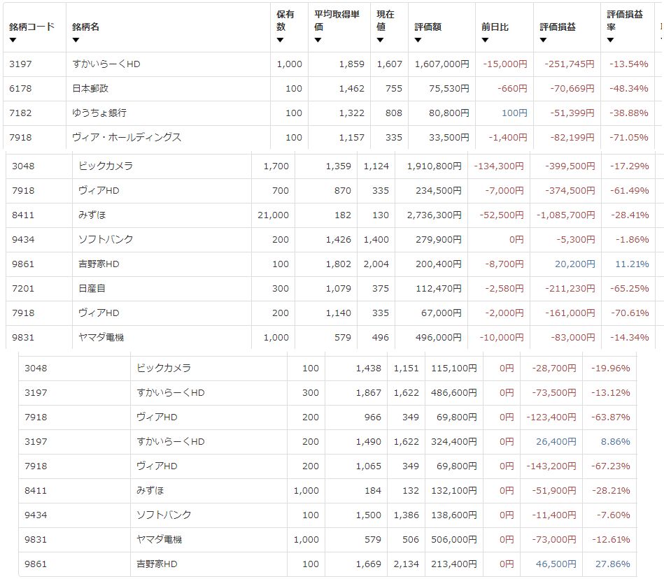 一番悪いのは、、、みずほ株か。