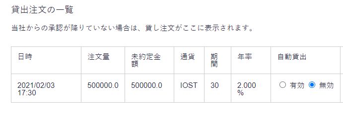 IOSTの半分50万口を1ヶ月の貸し出しをしてみた。1ヶ月だと年2%ざっくり計算で、IOST換算だと833口増えるのかな。