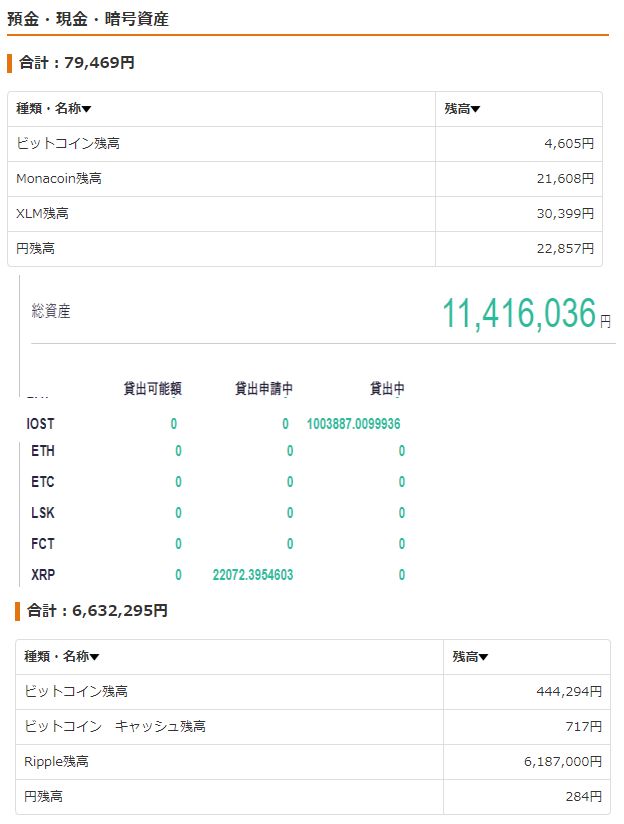 仮想通貨の正確な資産。貸し出し分は通常見えない為。