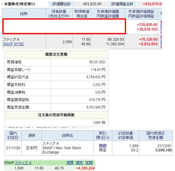 スナップチャットの利確を受けて、国内株の大損切りを実施。