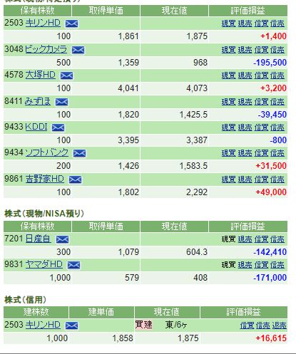 キリンHDについては、数年振り?に信用でも購入。
