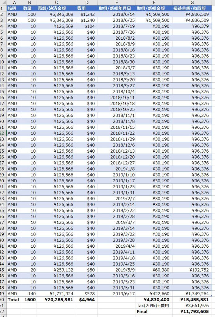 1/28にAMD株 1600株を売却した。