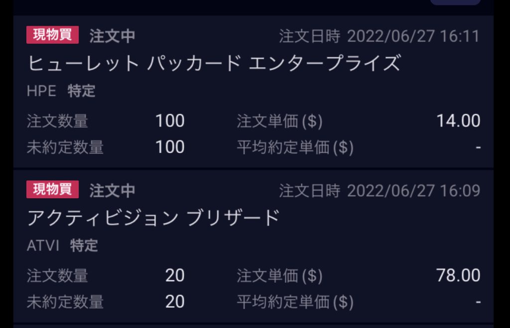 新US銘柄2つ HPE/ATVI購入 コメントを残す ウォーレン・バフェット氏が購入した2つの銘柄を買ってみた。ドルがあんまり無かったため少量となった。・アクティビジョン ブリザード ATVI 20株・ヒューレット パッカード エンタープライズ HPE 100株HPの方は配当が出るのが嬉しい。