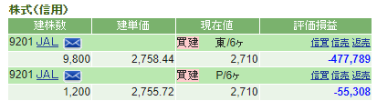 JAL 信用買い 失敗の予感 コメントを残す インバウンドが伸びているというニュースを見てJAL株を信用で1万株以上買ってみた。。。しかしいきなり含み損生活。何やってんだか。。。 キャンペーンがあったみたいで、11月末まで手数料無料だって、、、。日歩の金利をゼロにしてくれって感じ。