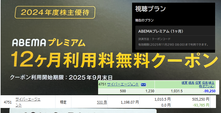 ABEMA優待 コメントを残す 12ヶ月なのに1ヶ月表記されるとあせる。「ABEMA」のサービスの特性上、月次更新のため「ABEMAプレミアム (1ヶ月)」と1ヶ月単位の表記となりますが、クーポンの期限に合わせて正しく登録されております。また、マイページに記載している視聴プランより、現在のプランをご確認