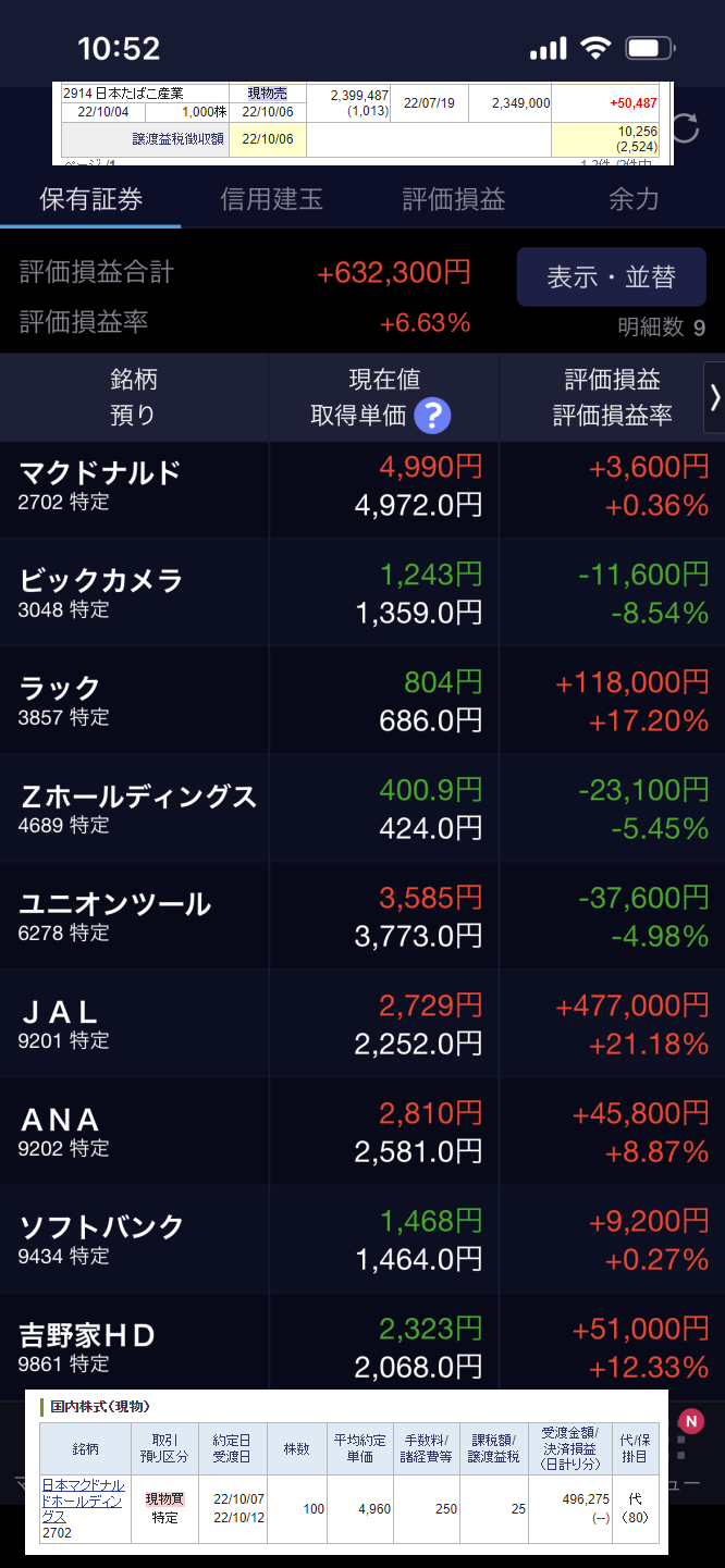 スナップチャットの利確を受けて、国内株の大損切りを実施。